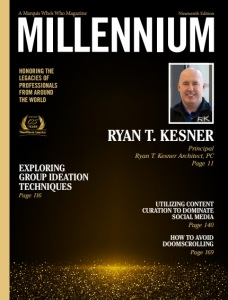 11 Millennium - Nineteenth Edition ARCHITECTURE, CONSTRUCTION AND REAL ESTATE Ryan T. Kesner is a rising expert and leader in the field of architecture. Today, he operates as the principal architect of Ryan T. Kesner Architect, PC, a firm specializing in luxury residential builds and both hospitality and commercial projects. Throughout his career, he has been driven by his experiences from his challenging childhood and young adulthood, experiences that have inspired him to find career success in a niche sector that allowed him to follow his passions. As part of his vocational journey, he pursued a formal education, earning an associate degree at Suffolk County Community College in 1999. After graduating, Mr. Kesner quickly developed a reputation for versatility and quality. Since 2017, he has served in his leadership role at Ryan T. Kesner Architect, PC. The firm has taken on a variety of unique projects, including pharmaceutical company offices, a store design for a fast-casual restaurant chain, and an outpatient medical plaza. Among its various projects, the company is well-regarded and best known for its residential builds in the Hamptons. Mr. Kesner remains active in all aspects of his company’s operation, including staff development, client liaisons and long-range planning, in addition to completing design work at all stages. In recent years, he has shifted into a more active mentorship position with his employees. To wit, he notably helped one employee obtain a professional license and supported another through completing an advanced degree. As an established, award-winning professional in his field and a unique figure in his community, Mr. Kesner is active in various charitable outreach and fundraising projects, including with Habitat for Humanity, pro bono work on a community ice rink, and support of the Suffolk Community College Foundation. He also regularly participates in the Caring for Kids Gala and a production of the Jerome Bettis Bus Stops Here Foundation. Looking ahead, Mr. Kesner plans to continue his support of children’s charities and sustain his company’s ongoing success. RYAN T. KESNER PRINCIPAL Ryan T. Kesner Architect, PC Southampton, NY
